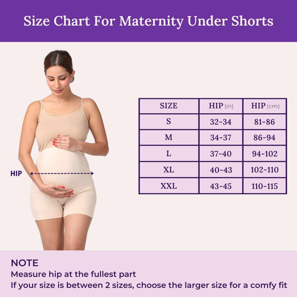 Designed to fit comfortably at mid-thigh length, these maternity cotton shorts stay in place without causing inner thigh chafing. These undershorts are useful for all trimesters and more so after 3 months of pregnancy as your belly needs extra support. We understand the importance of comfort during pregnancy. That's why our pregnancy shorts feature a soft yet firm elastic waistband, providing both comfort and the support your belly needs.