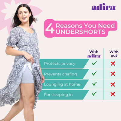 Adira undershorts for women and teens are more than just innerwear they are a comfort essential designed to keep you feeling secure and confident all day long. Whether you're heading to school, running errands, or simply relaxing at home, these undershorts provide seamless coverage, prevent chafing, and eliminate wardrobe malfunctions.