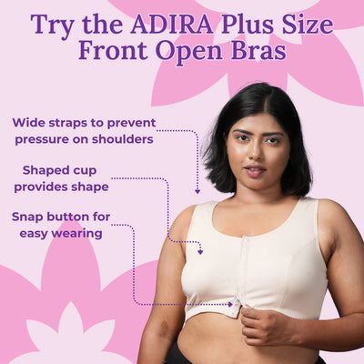 Finding a bra that supports a fuller bust can be challenging, but the Adira plus size front open bras for plus-size women make it much easier. This bra works well for everyday use whether you're out running errands or just relaxing at home. It has snap buttons in the front, so you can put it on quickly without dealing with hooks. Plus, it’s non-padded and wire-free, meaning it’s super breathable and comfy no tight or uncomfortable feeling! The cups are designed to fit your natural shape, and the two layers make sure nothing shows through. Made from a soft mix of cotton and elastane, it feels smooth on your skin and stretches just the right amount for all-day comfort. The racerback type adds extra support and keeps the straps from falling off your shoulders. With full coverage and high sides, it also helps stop any spillage, so you can feel confident and comfortable all day long.