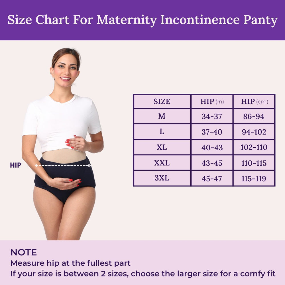 Maternity incontinence panties are specialized undergarments designed for women during pregnancy and postpartum to provide additional protection and comfort during a time when urinary incontinence may be a concern. These panties feature an extended crotch that has 3 layers. The 1st layer is anti-fungal, anti-microbial & quick dry. The 2nd layer is an absorbent layer and the 3rd layer is a breathable leak proof layer. These layers together help to soak up any leaks and keep clothing dry. It is recommended that women wear maternity incontinence panties during pregnancy and postpartum to help manage urinary incontinence and prevent discomfort and embarrassment. It is also important to practice pelvic floor exercises and maintain good hydration to help prevent urinary incontinence.