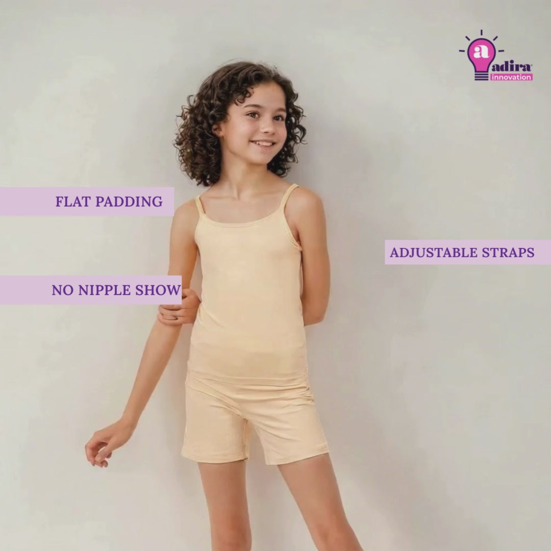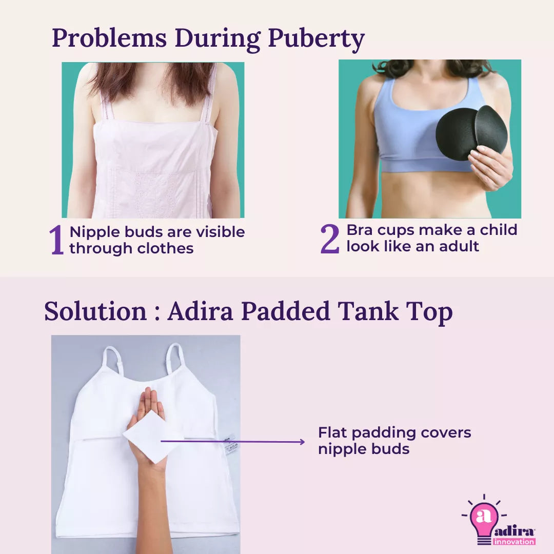 Padded Tank Top For Teens | Flat Padding Covers Nipple Buds | Perfect To Wear Under School Uniform